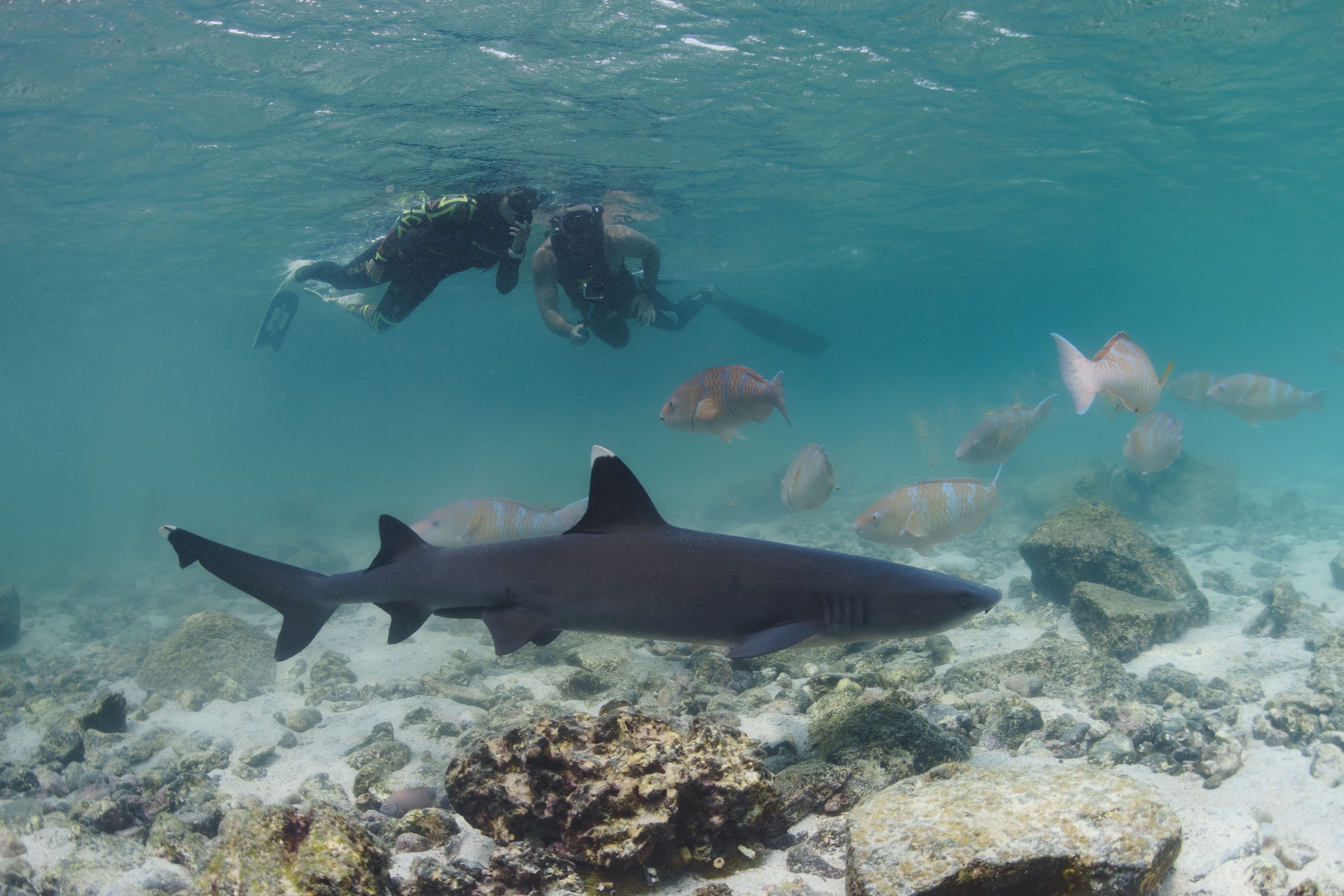 Embark on an exciting day exploring Pinzón Island! Start your adventure at 8:00 AM at Hotel Ninfa, then enjoy a scenic 2-hour boat ride to Pinzón Island. Upon arrival at 10:30 AM, dive into the crystal-clear waters of Bahía Pingüino for your first snorkeling session, where you'll encounter vibrant marine life such as sea turtles, rays, and colorful fish. After snorkeling, try your hand at fishing as we cast a line into the pristine waters.